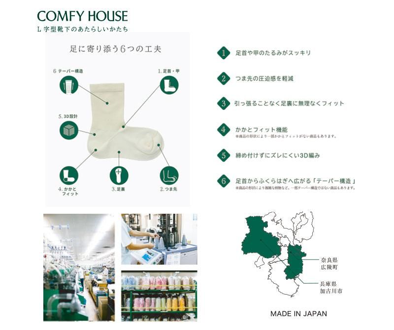 足の形に合わせて足首から履き口まで広がっている事が特徴。