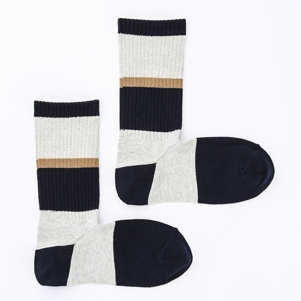 サイズごとに異なるパネルデザインを施した、遊び心溢れるソックス。