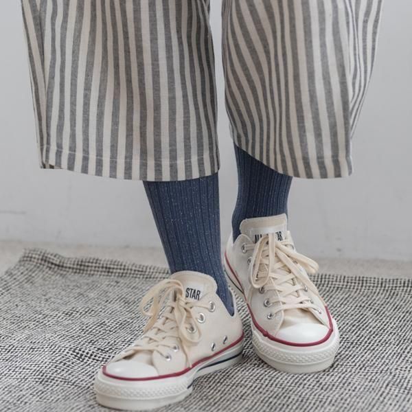解消したリブ調に編んだクルーソックス。