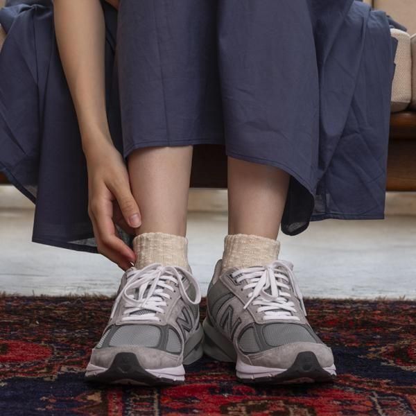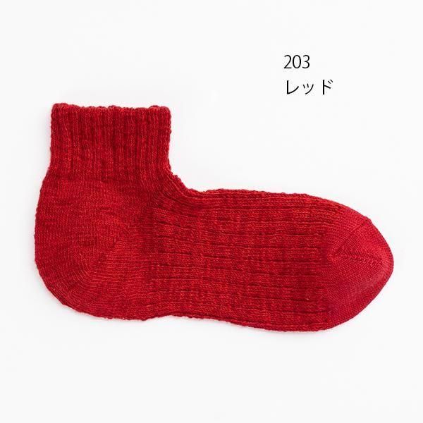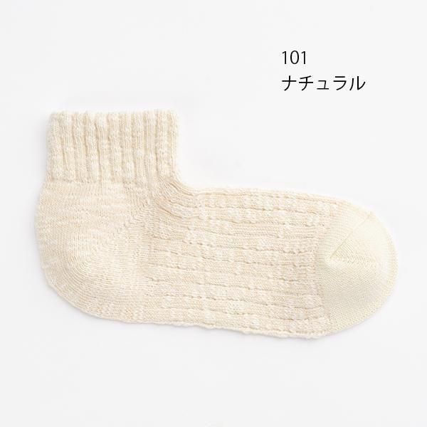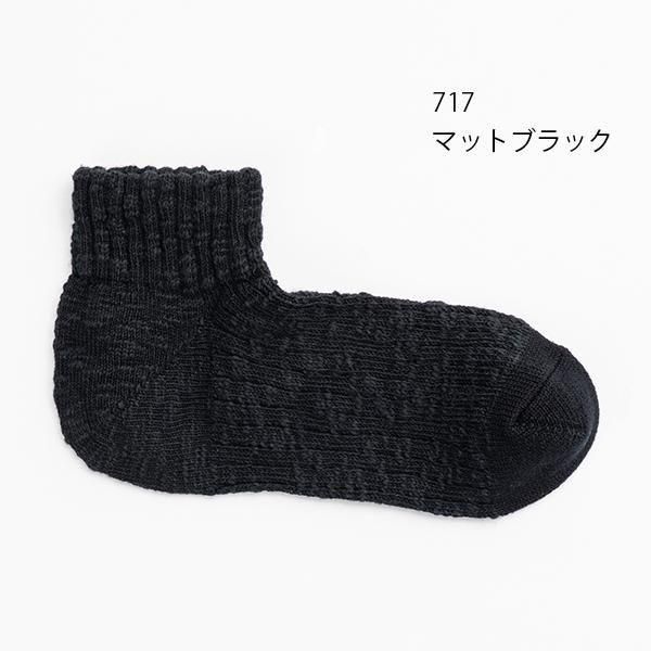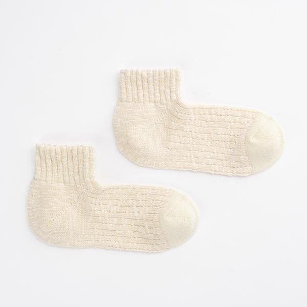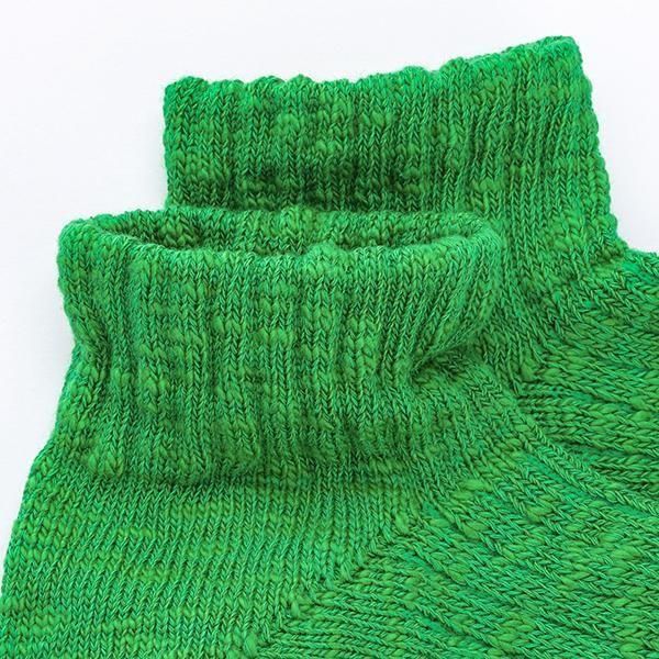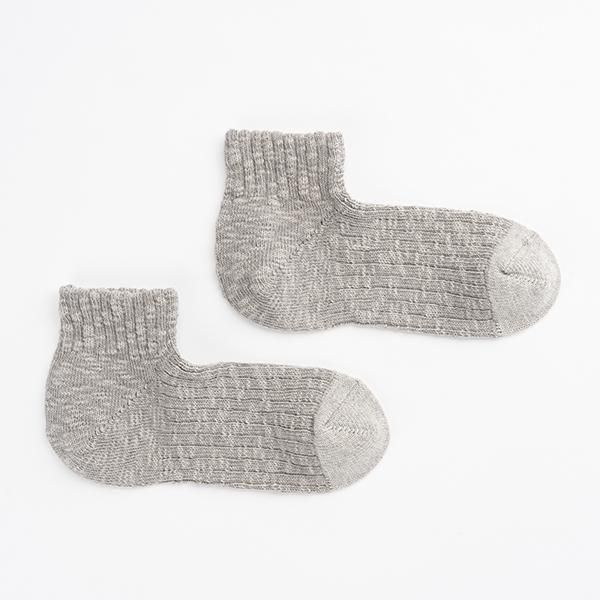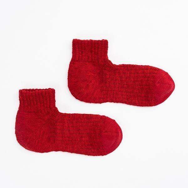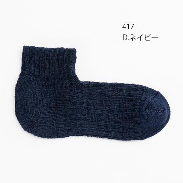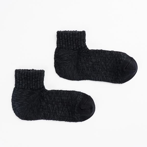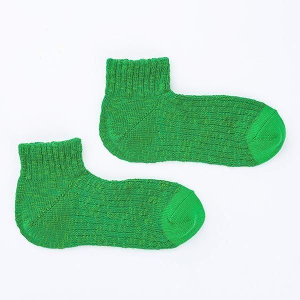 時間をかけて染め上げたスラブ糸を引き揃え、表情豊かな靴下に編み立てました。