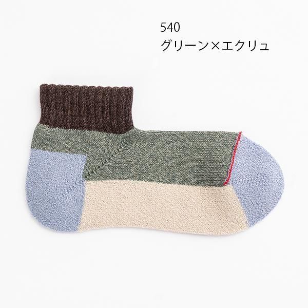 足の形状にあわせて踵部も深く編み込んでいるので足裏面を引き伸ばさずズレを抑えています。