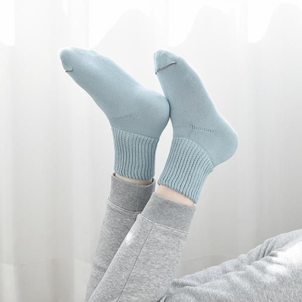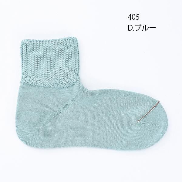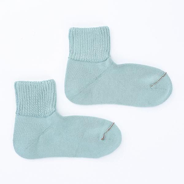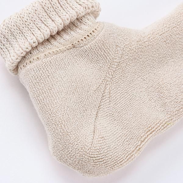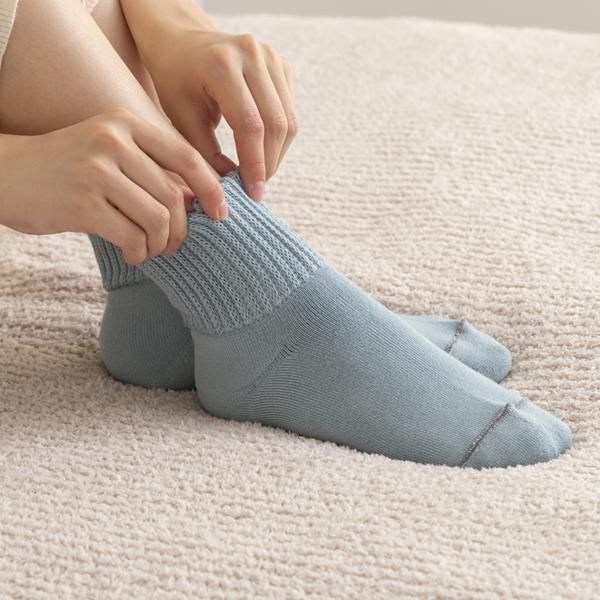 パイルとレーヨンシルクの素材が優しく足元を包み込むルームソックスです。